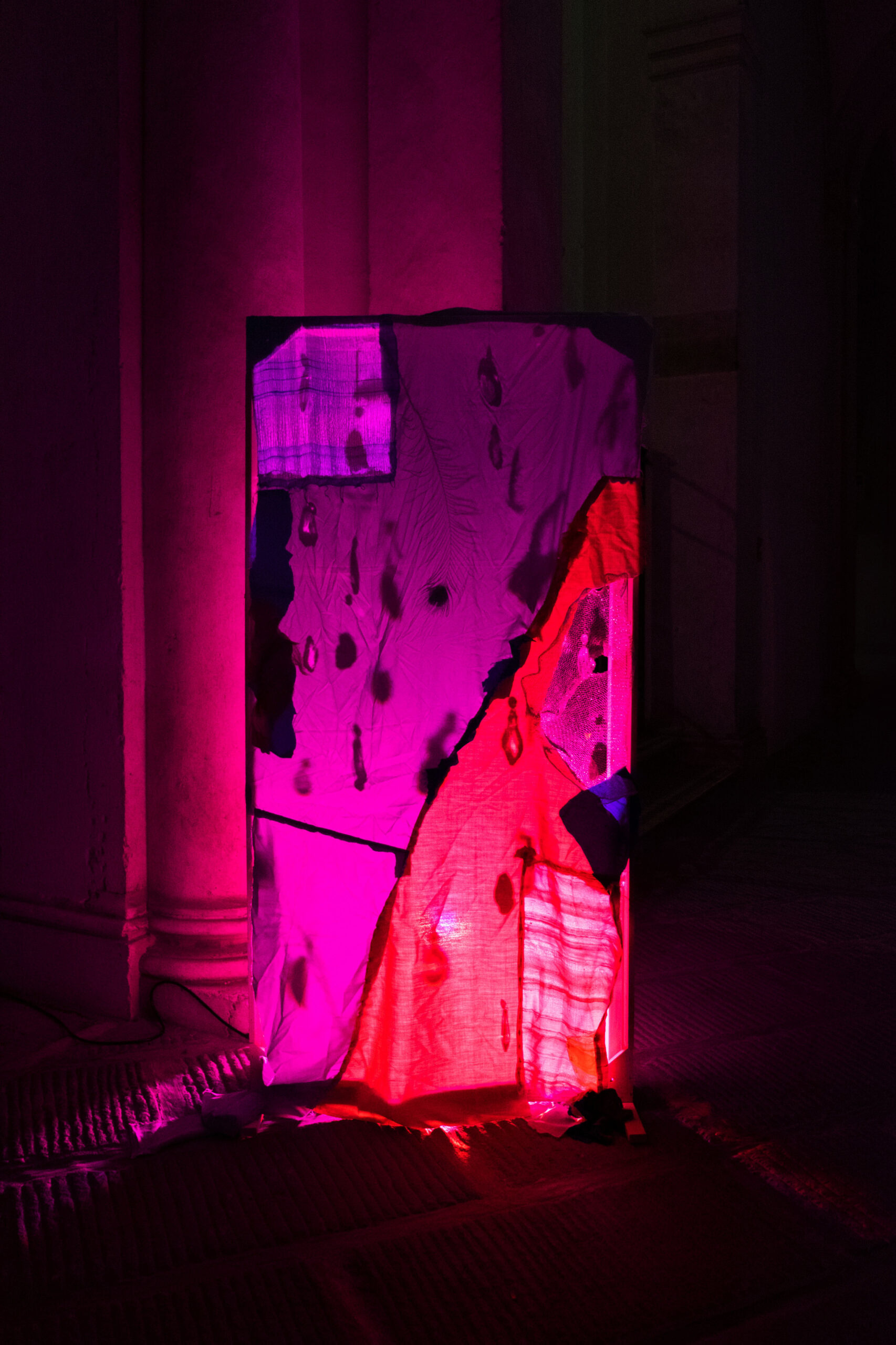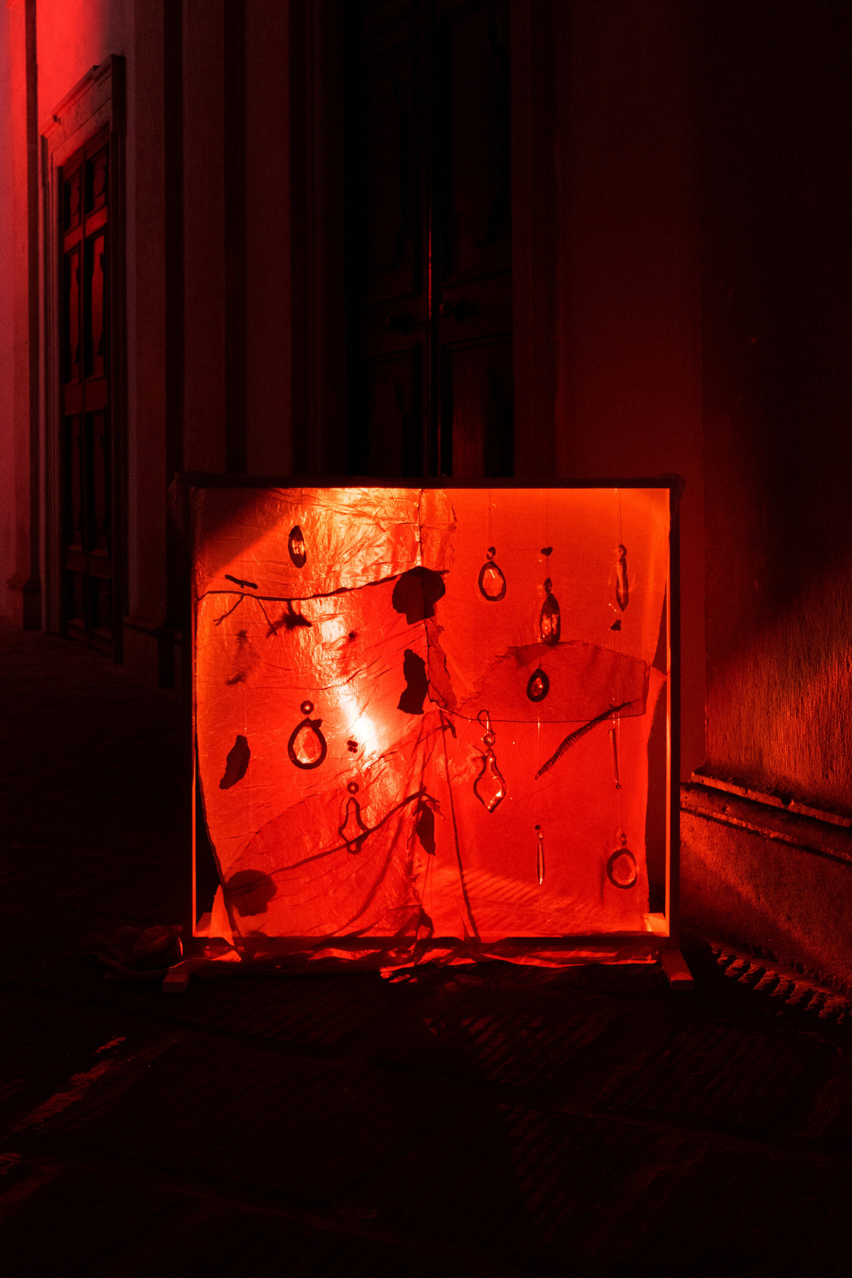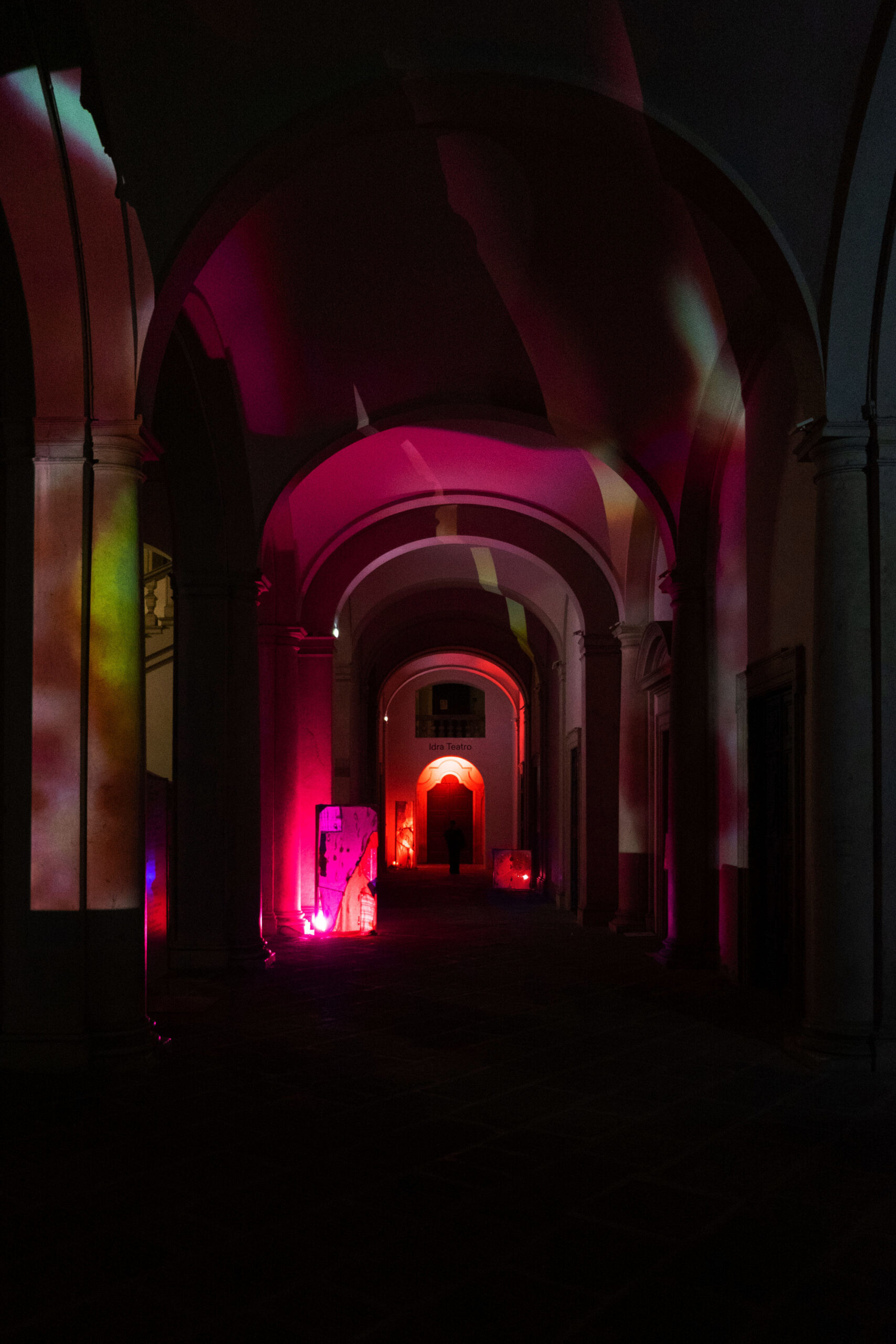 Interno Spaziale è un margine di libertà rispetto al dettato dell’attuale. È un invito al viaggio interiore continuo, allo scostare la tenda, al far entrare luce. È un’esperienza immaginifica fatta di portali in cui la realtà diventa oggetto di decostruzione e ricostruzione tramite la luce. L’installazione abbraccia un’idea di archeologia del presente, si mostra come un tentativo di conservare le memorie di cui tempo e natura cancellano i contorni e ne modificano la storia, i confini e le stratificazioni. La traccia sonora ha preso forma nell’ambito del più ampio progetto Prismatica, 2022.