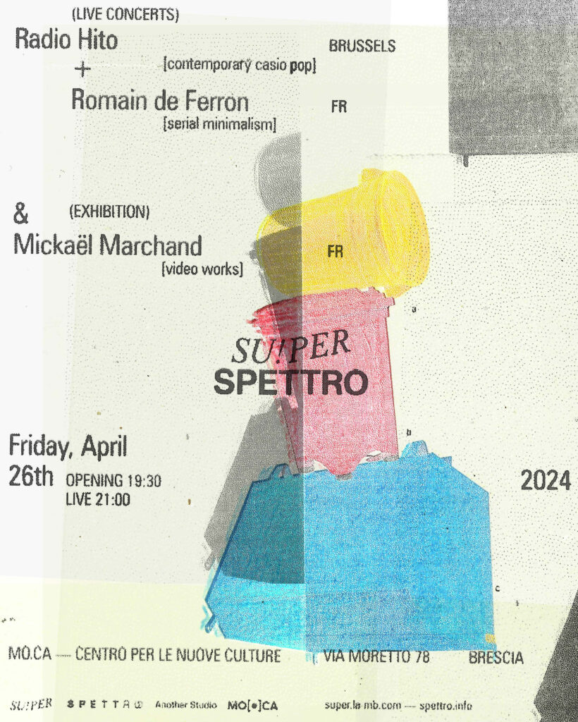 Radio Hito e Romain de Ferrón porteranno due live separati ma innescati l’un con l’altro, a conclusione di una residenza settimanale a Spettro che li porterà a lavorare insieme alla produzione di alcune tracce a quattro mani.